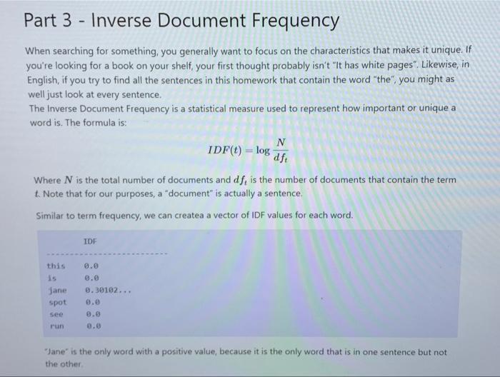Solved Part 3 Inverse Document Frequency When Searching Chegg Com